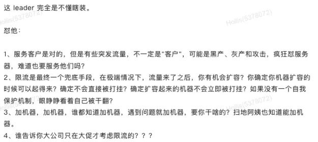 在我们的八股文中,有个限流的方案,被咱们的兄弟的 leader给怼了。他是这么说的: