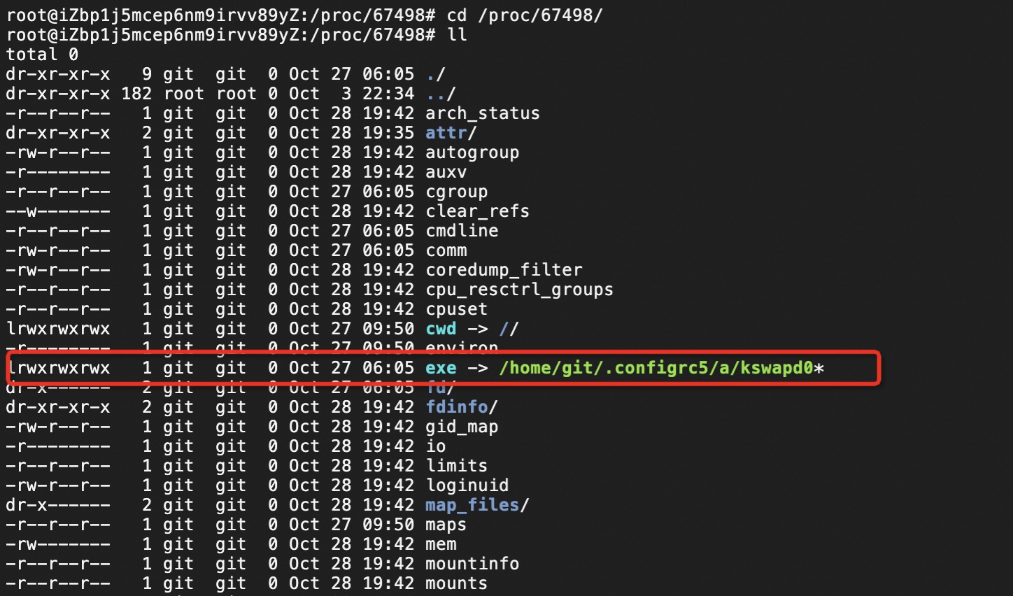 接下来就要深挖了,找到这个kswapd0占用的文件路径到底在哪,进入/proc/