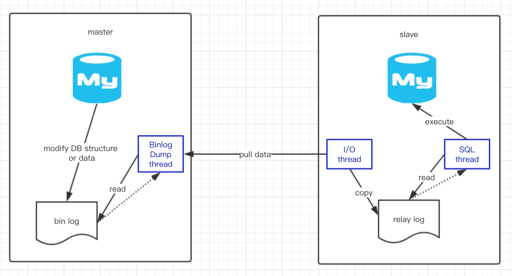 MySQL在主从复制的过程中,数据的同步是通过bin log进行的,简单理解就是主服务器把数据变更记录到bin log中,然后再把bin log同步传输给从服务器,从服务器接收到bin log之后,再把其中的数据恢复到自己的数据库存储中。