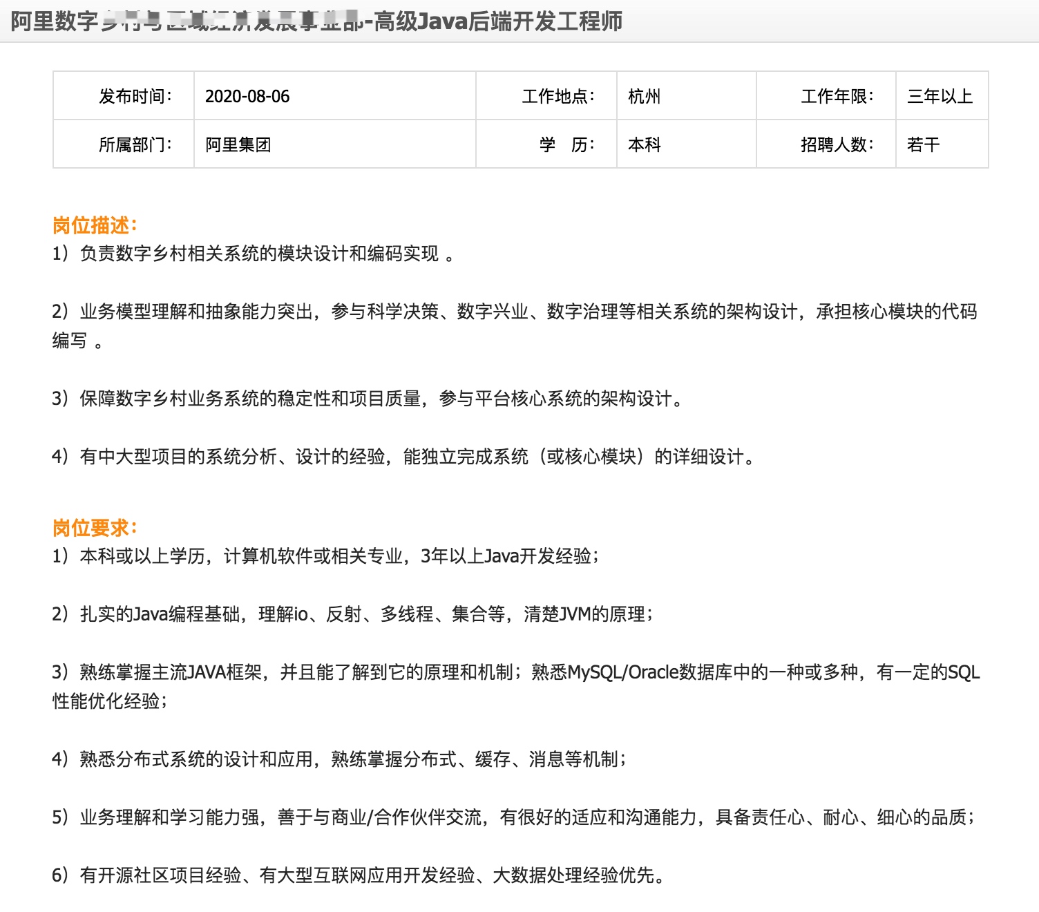 比如,我们到阿里巴巴的招聘网站上,随便找几个工程师岗位,看一下岗位要求:
