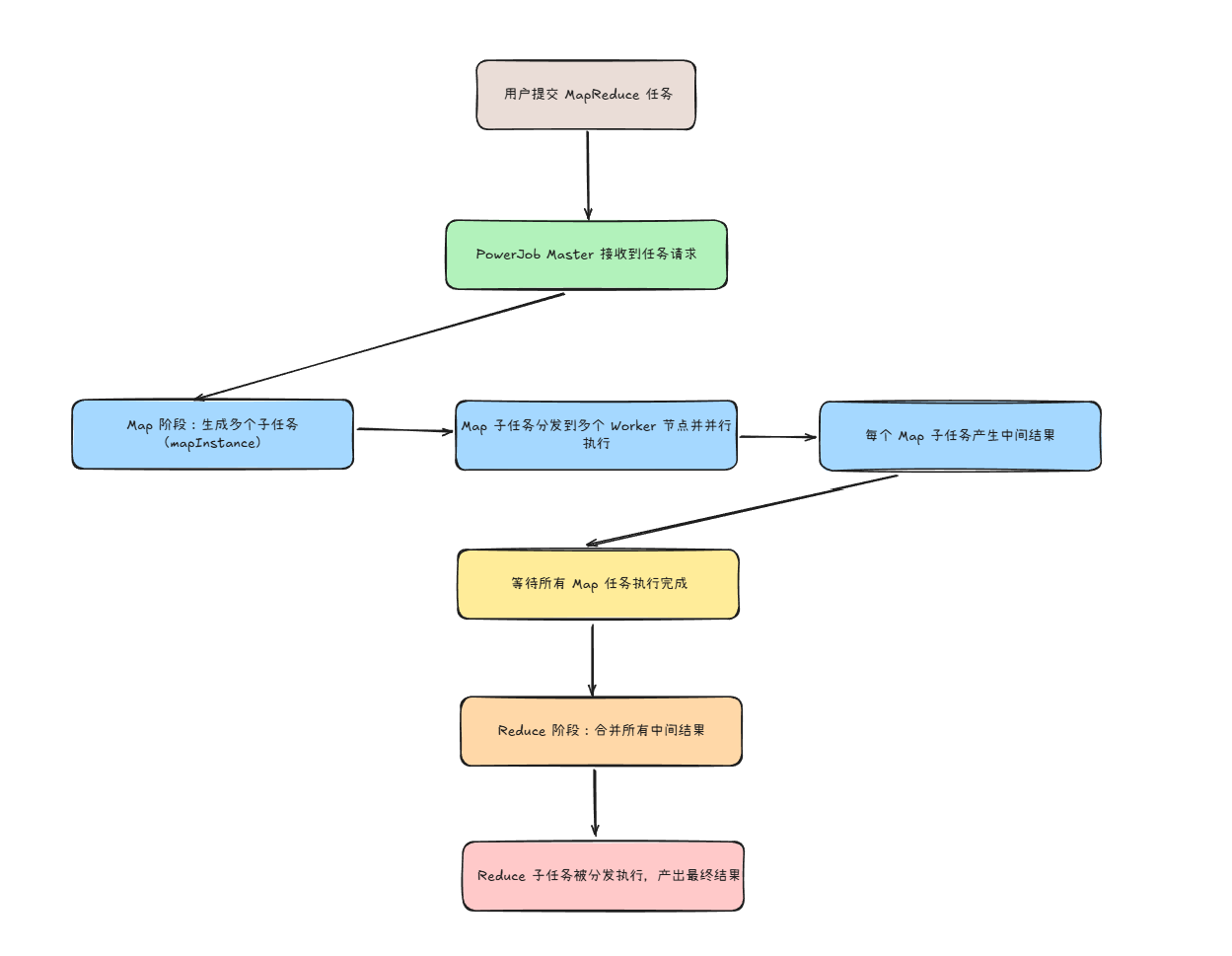 在PowerJob和Schedulerx中都支持MapReduce动态分片。它其实是借鉴了 Hadoop 的 MapReduce 思想 —— 将任务拆分成多个子任务(Map 阶段),并最终将子任务的结果聚合处理(Reduce 阶段),支持数据驱动的分布式计算。