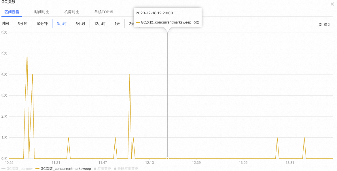 可以看到,集群的GC次数是3小时内有十几次了,那么去看一下单机的情况。