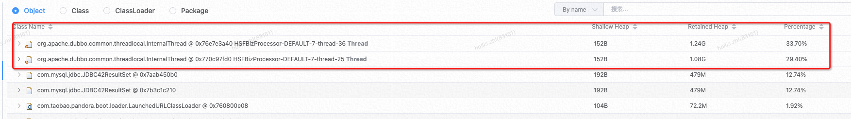 我们因为内部有进行堆dump以及分析的工具,如果么有的话可以使用jmap或者arthas获取堆dump。然后再使用Java VisualVM、Memory Analyzer Tool等工具进行分析。