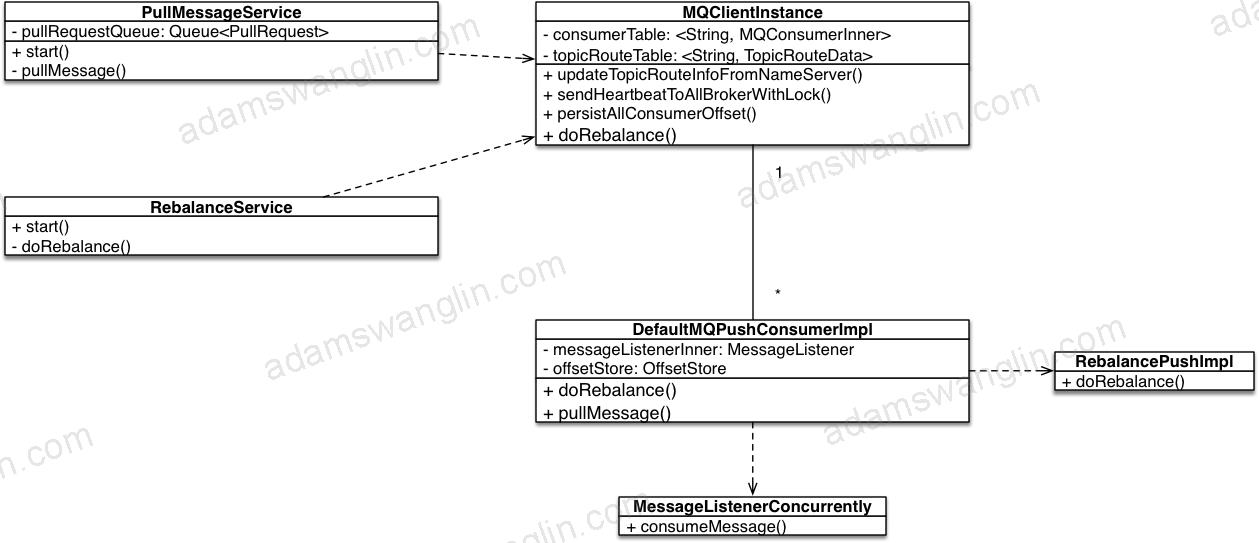 - MQConsumerInner:记录当前consumerGroup和服务端的交互方式,以及topic和tag的映射关系。默认的实现是DefaultMQPushConsumerImpl,和consumerGroup的对应关系是1 : 1