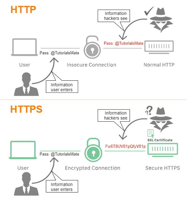 - HTTP: HTTP是明文传输的,这意味着数据在传输过程中不加密,容易受到中间人攻击。敏感信息,如密码和信用卡号,如果通过HTTP传输,可能会被窃取。