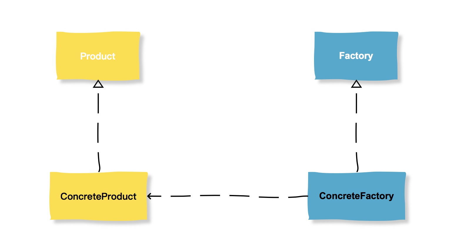 在工厂方法模式中,工厂方法用来创建客户所需要的产品,同时还向客户隐藏了哪种具体产品类将被实例化这一细节,用户只需要关心所需产品对应的工厂,无须关心创建细节,甚至无须知道具体产品类的类名。