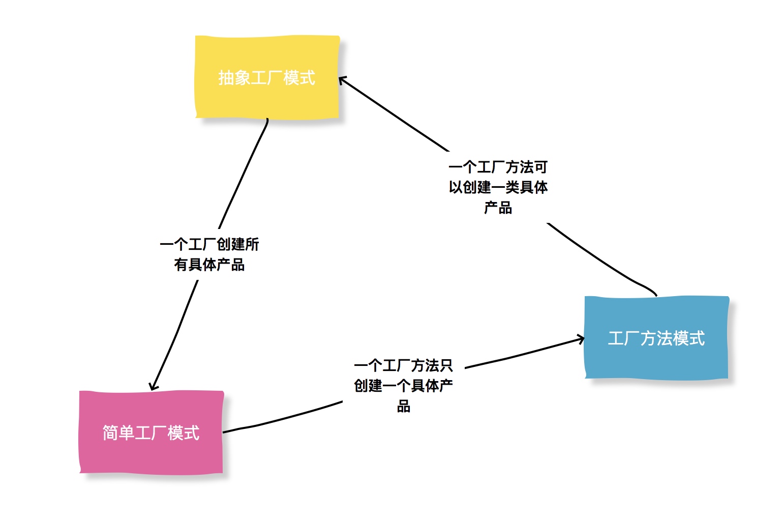 **工厂模式有三种,分别是简单工厂模式、工厂方法模式、抽象工厂模式。**三种模式从前到后越来越抽象,也更具有一般性。