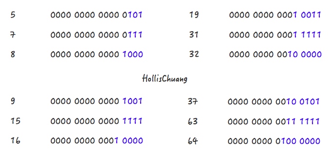 Step 1 怎么理解呢?其实是对一个二进制数依次无符号右移,然后与原值取或。其目的对于一个数字的二进制,从第一个不为0的位开始,把后面的所有位都设置成1。