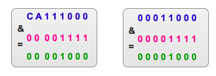 比如:CA11 0000和0001 0000在对0000 1111进行按位与运算后的值是相等的。