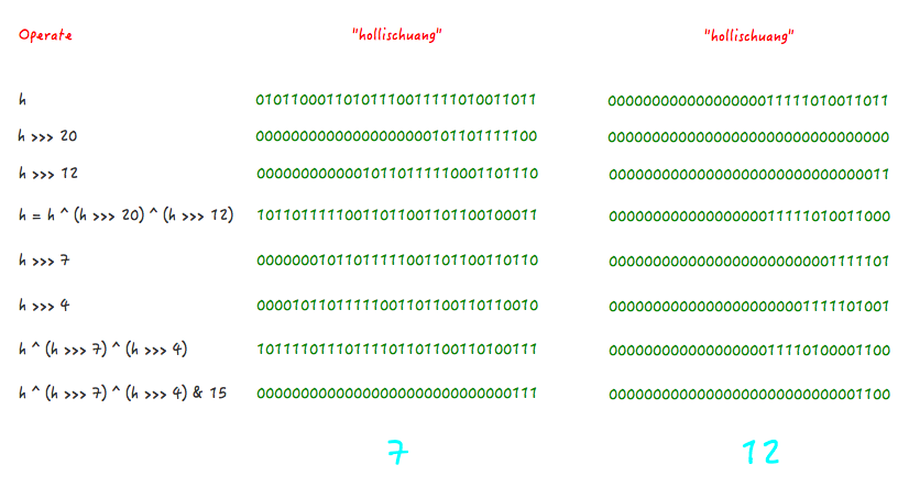 这段代码是为了对key的hashCode进行扰动计算,防止不同hashCode的高位不同但低位相同导致的hash冲突。简单点说,就是为了把高位的特征和低位的特征组合起来,降低哈希冲突的概率,也就是说,尽量做到任何一位的变化都能对最终得到的结果产生影响。
