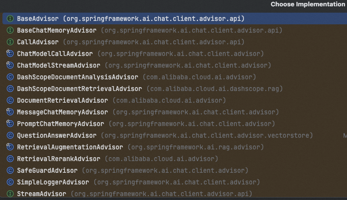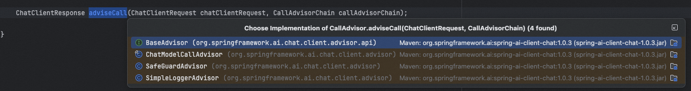 他还有几个子接口。主要就是CallAdvisor、StreamAdvisor以及BaseAdvisor。