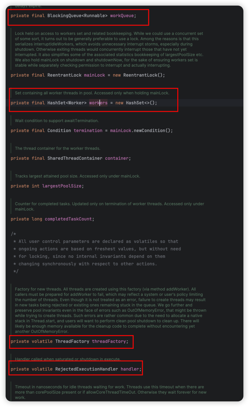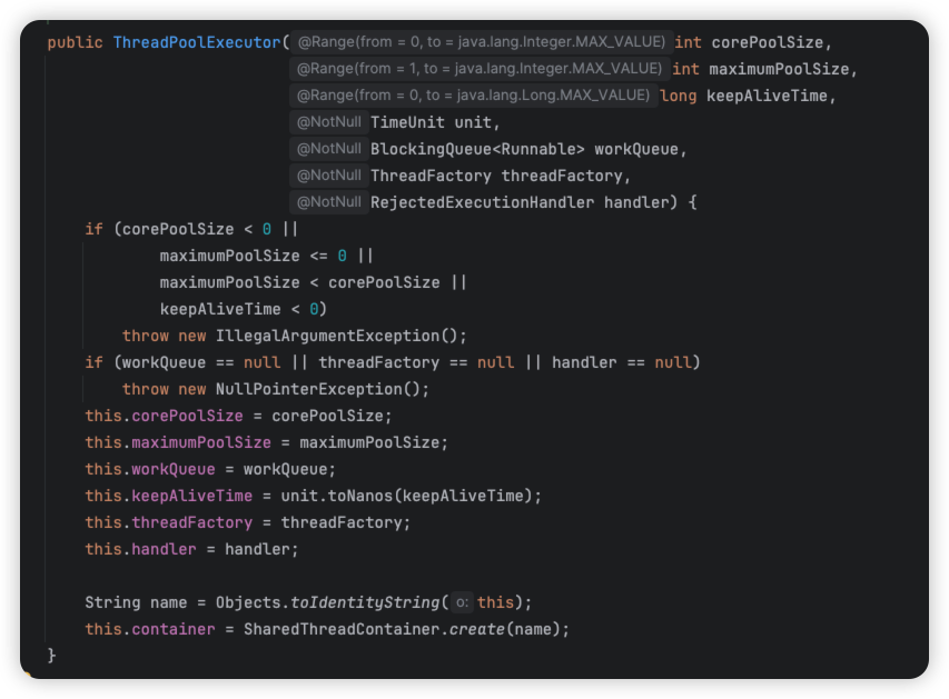 对应到代码(ThreadPoolExecutor)中,就是以下这和几个: