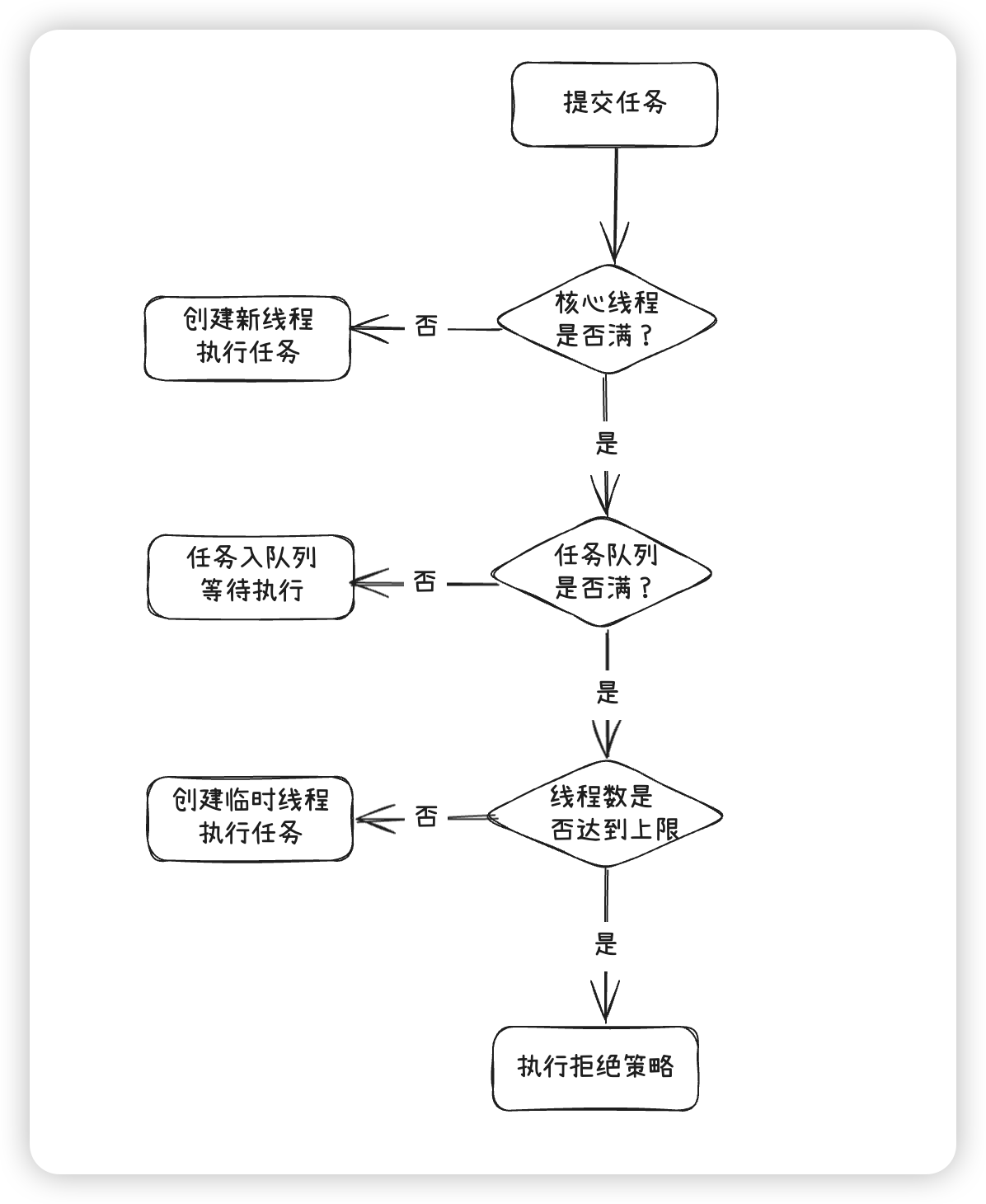 ,负责管理所有工作线程的生命周期。 - 拒绝策略(handler):是一个RejectExecutionHandler,用来定义如何处理无法执行的任务。