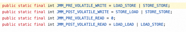 以上定义可以在JDK的MemoryBarriers.java中找到: