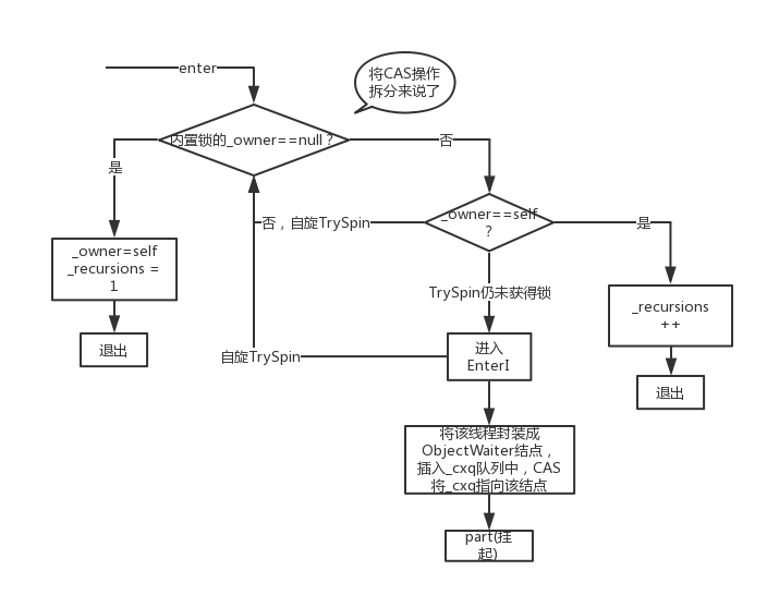 我们知道了 synchronized 对某个对象进行加锁的时候,会调用该对象拥有的 objectMonitor 的 enter 方法,解锁的时候会调用 exit 方法。