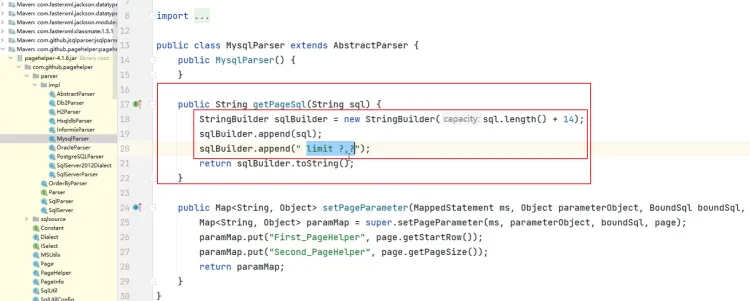 PageHelper会在执行器的query方法执行之前,会从ThreadLocal中再获取分页参数信息,页码和页大小,然后执行分页算法,计算需要返回的数据块的起始位置和大小。最后,PageHelper会通过修改SQL语句的方式,在SQL后面动态拼接上limit语句,限定查询的数据范围,从而实现物理分页的效果。并且在查询结束后再清除ThreadLocal中的分页参数。