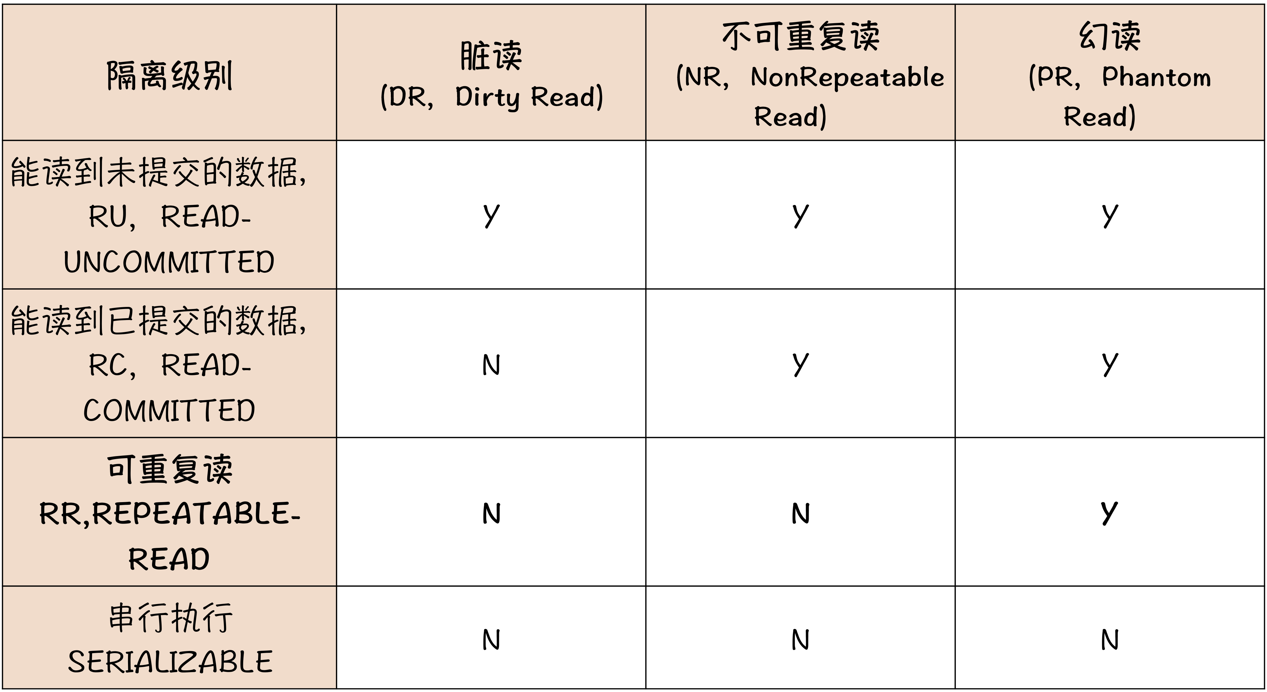 注意!!!以上是SQL-92标准中对事务隔离级别以及需要解决的读现象(脏读、幻读、不可重复读)的定义,但是不同的数据库在实际实现的过程中,是有一些细微差异的。