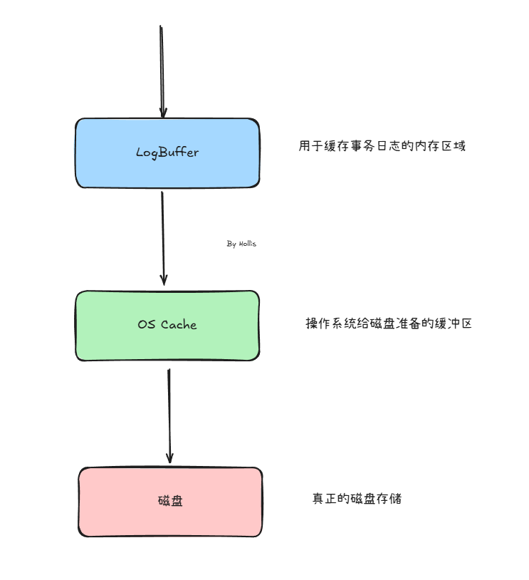 - 1(默认值):写入LogBuffer,并立即将LogBuffer数据写入磁盘缓冲区并刷盘。