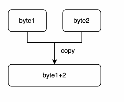 考虑一种场景,当一个数据包被拆成了两个字节流通过TCP传输过来后,那么对于接收者的机器来说,为了方便解析,它需要新建一个ByteBuf将这两个字节流重组成一个新的数据包,如下图所示: