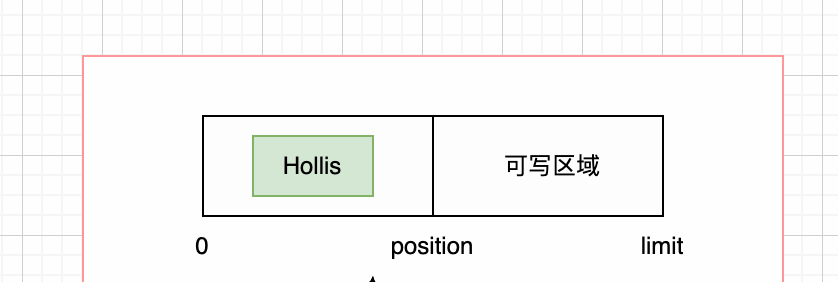Java原生的ByteBuffer的数据结构,分为limit,capacity两个指针,如果我们写入“Hollis”之后,ByteBuffer的内容如下: