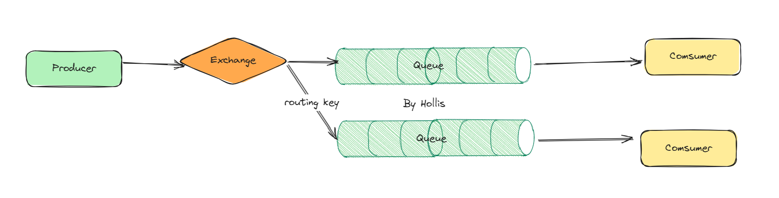 简单模式是最基本的工作模式,也是最简单的消息传递模式。在简单模式中,一个生产者将消息发送到一个队列中,一个消费者从队列中获取并处理消息。这种模式适用于单个生产者和单个消费者的简单场景,消息的处理是同步的。