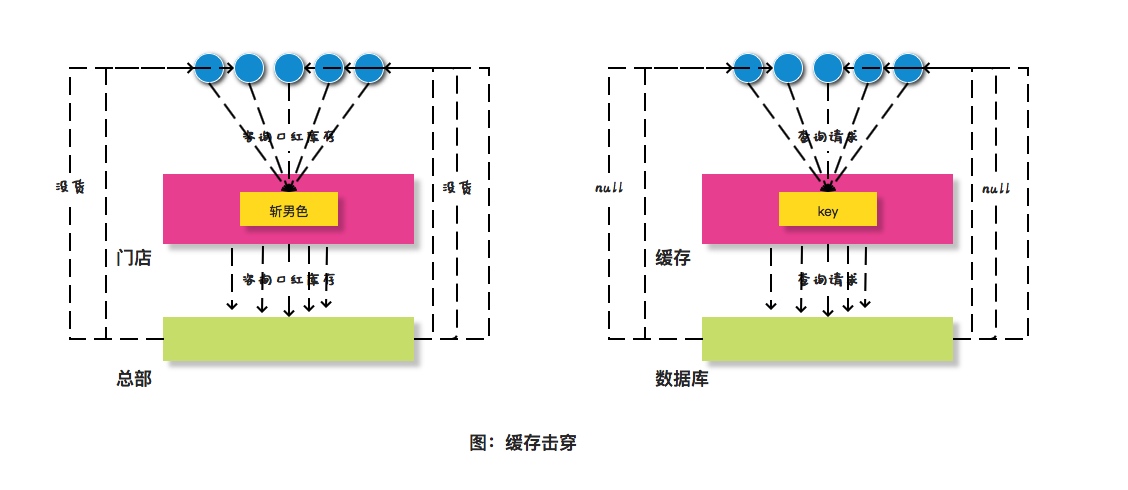 或者如果有多家门店同时卖完了,那么总部接收到的咨询量就会剧增。类似这种情况,在缓存领域有一个类似的概念叫做缓存击穿。