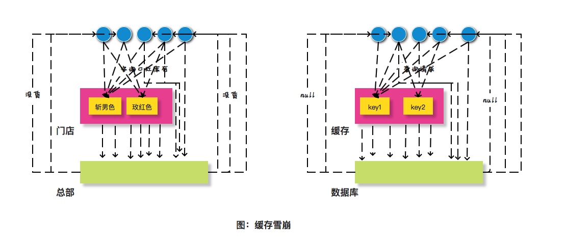 或者是门店突然出现问题了,不能提供服务了,很多顾客就可能自己打电话到总部咨询库存情况。类似这种情况,在缓存领域有一个类似的概念叫做缓存雪崩。