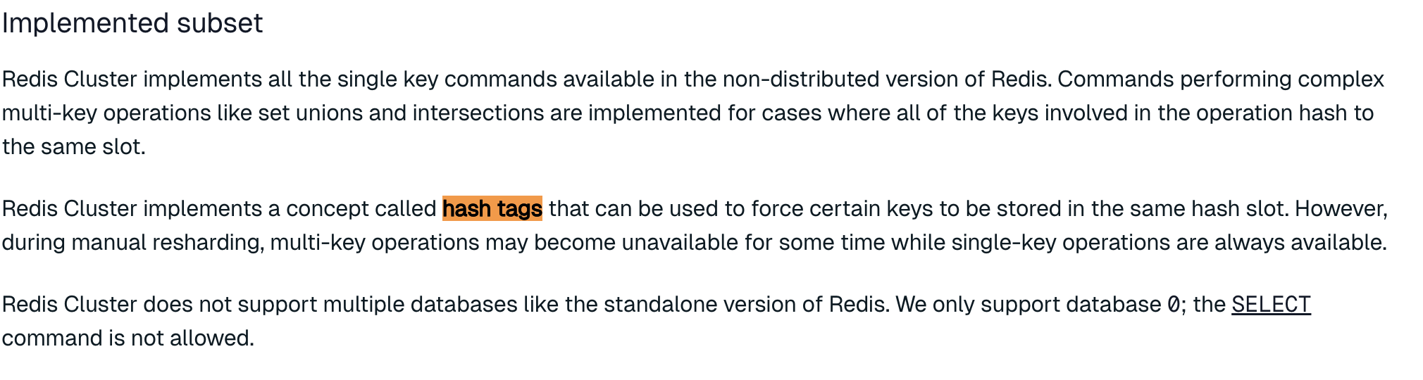 在 Redis 的官方中,提到了一个 hash tags的功能: